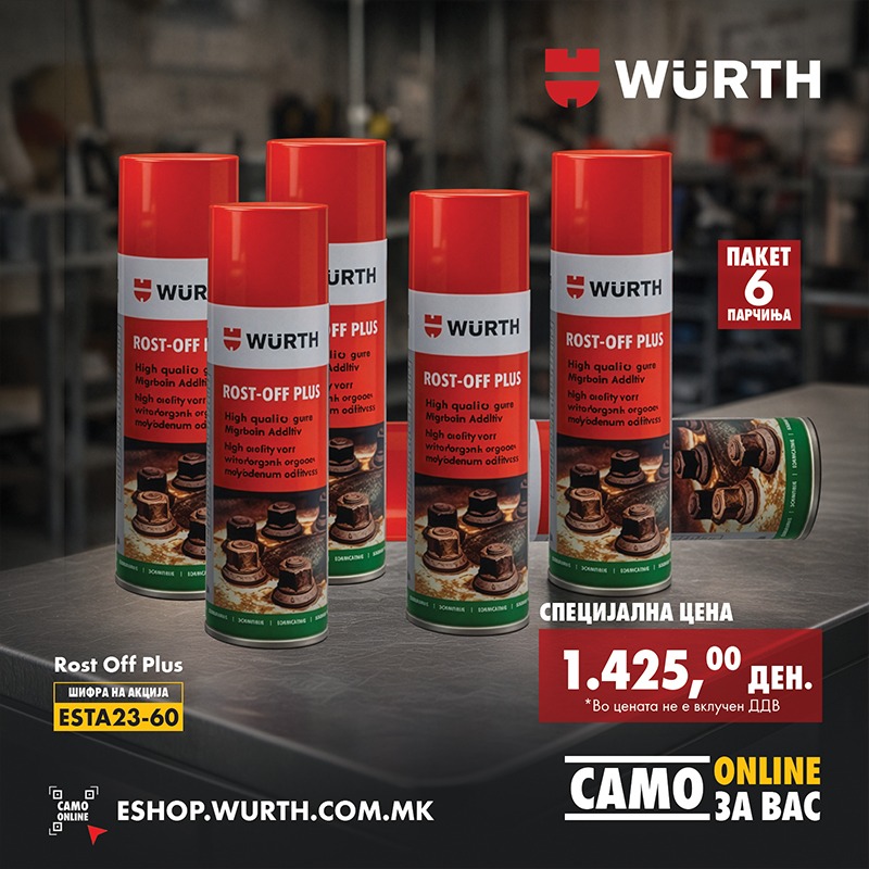 Искористете ја можноста да добиете дел од нашите производи по специјални цени. Понудите се однесуваат за ограничени количини, во ограничен временски период. Побрзајте и станете еден од многуте задоволните WURTH купувачи.